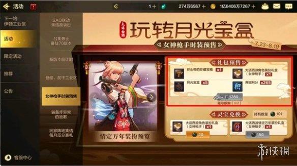 1、大话西游联动礼包即将于版本维护后下架,玩家可在活动页面提前预购女枪手专属的大话西游联动礼包,售价1280点券。