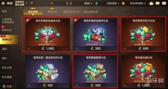 3、每月跨界石粒子礼包