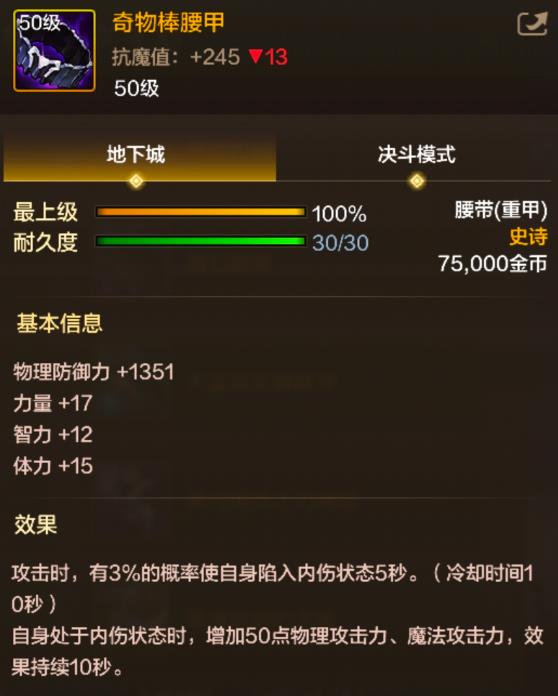 ② 自身处于内伤状态时,增加50点物理攻击力、魔法攻击力,效果持续10秒。