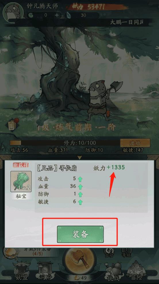 3、物品有不同的等级,当我们获得等级更高的物品时,我们可以选择装备等级更高的物品,这也可以提升我们的妖力。替换完等级高的物品后,可以分解等级低的物品,物品分解后会增加我们的修为并且获得一定数量的灵石。