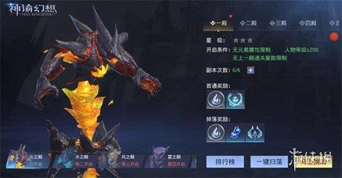 5、关卡分为首通奖励和掉落奖励,越后的殿层需要的进入的条件和门槛越高,但是掉落的奖励也是越来越丰厚。