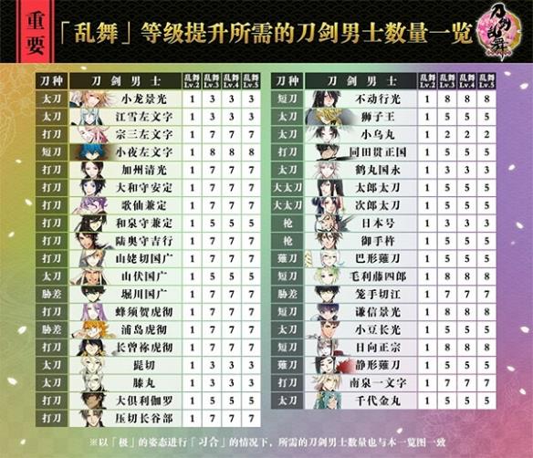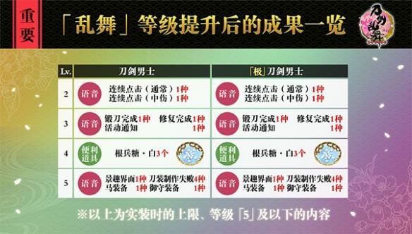 「乱舞」等级与现有的「刀剑」等级不同,是能够让刀剑男士通过「习合」来提升的另外一种等级系统。