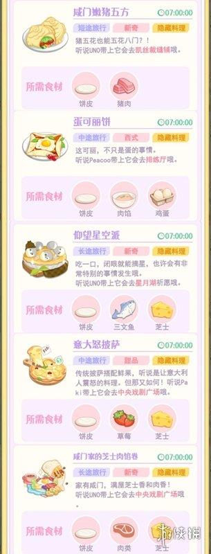 【探险准备】:当萌崽提出出门探险需求时,前往料理台为其准备料理。根据萌崽提示的探险场景,选择对应食材制作适配的料理(不同食材组合可制作出不同效果的料理);料理制作完成后交付给萌崽,萌崽将携带料理出发探险,一段时间后返回并带回探险奖励。