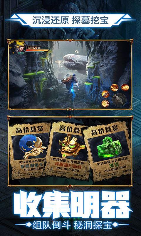3、创新盗墓宝藏玩法,花一点点体力即可沉淀在3D打造的地下世界,摸金、探秘神秘的上古遗迹,金币、银币、装备掉落不停!