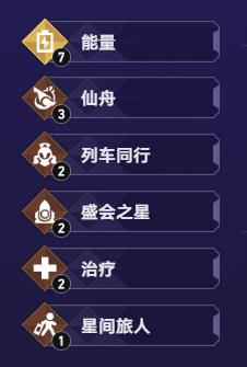 7能量、3仙舟、2列车同行、2盛会之星、2治疗、1星间旅人