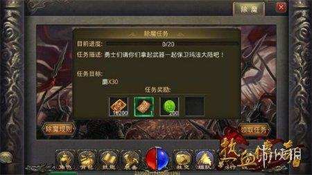3、降魔洞窟:全新副本震撼登场,可组队也可独自挑战,只有在限定时间内将所有怪物击杀才能继续前进或离开战场,团队合作,激进推本,只有强者才有望斩杀最后的魔王,夺走神秘宝藏。
