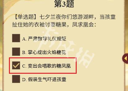 问题:七夕兰夜你们悠游湖畔,当孩童扯住她的衣袖讨要糖果,凤求凰会?