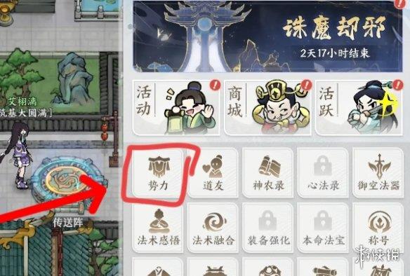2、在界面找到势力,并点击。