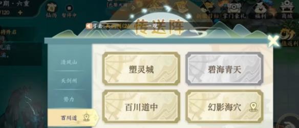 2、首先要在地图上面找到一个传送阵,找到之后,都可以直接点到百川道。