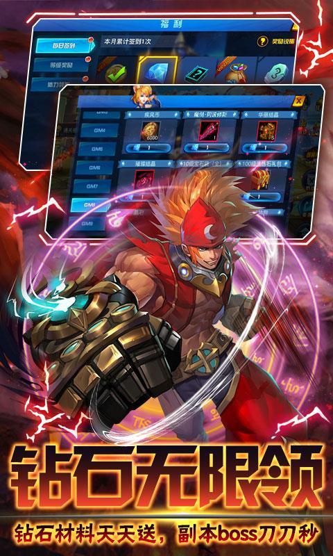 5.每日登录得海量钻石,装备免费强化,成神不是梦!多档免费豪礼任你选,在线即送,材料时装强化石!
