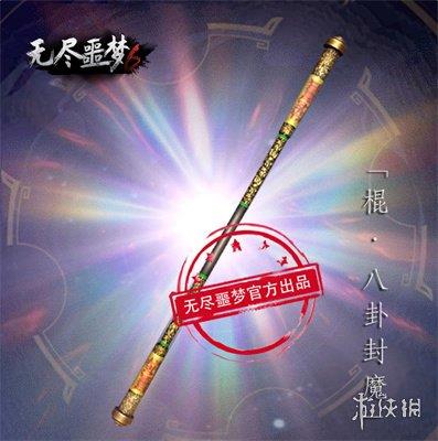 此棍由乌檀木精制而成,沉稳有,棍身饰以八卦图案,对邪魔之气具有封锁净化之效,能防止精怪再度作恶。