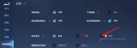 3、紧接着,找到并启用隐身在线状态选项。