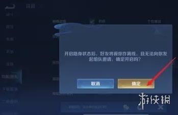4、最后,确认操作,即可成功切换至隐身模式,其他玩家将无法看到你的在线状态。