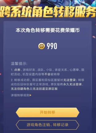 无法免费转区,必须花费99元在营地购买荣耀币