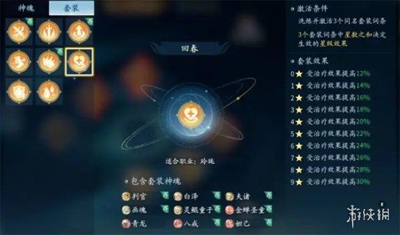 由于奶妈常常成为战斗中的首要攻击目标,即所谓打架先打奶,玲珑必须死,因此回春神魂的提升受治疗效果百分比属性显得尤为重要。