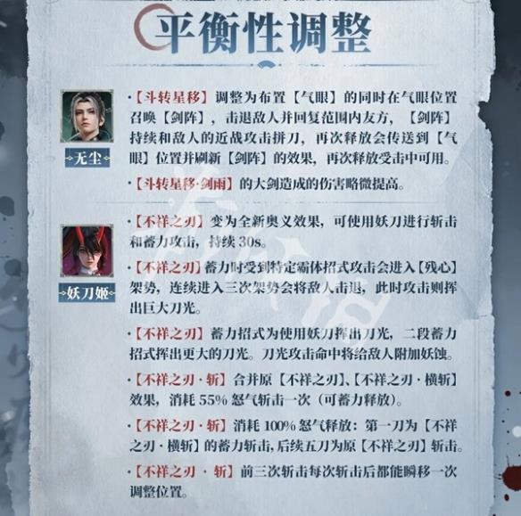 S9赛季英雄也迎来调整,根据后台数据与玩家反馈。我们将针对无尘、妖刀姬、魏轻、万钧、席拉、殷紫萍、崔三娘做出如下调整。