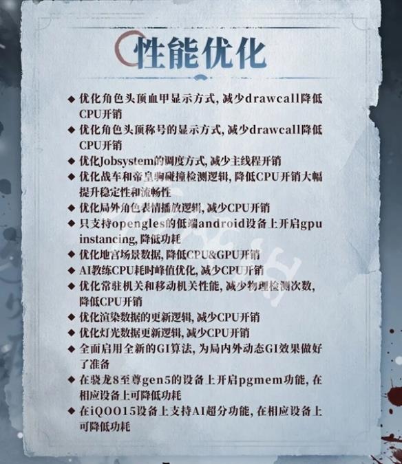 为了给大家带来更优质的游戏体验,我们持续对游戏性能、体验等方面进行优化!新赛季,有以下部分将迎来优化