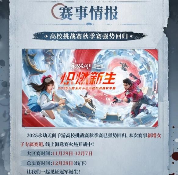 3、9月20日起,永劫无间手游校园行再度起航,成都、重庆、广州、长沙、大连等城市巡回酣战,还有更多城市等待解锁,劫妹期待与各位英雄面基。