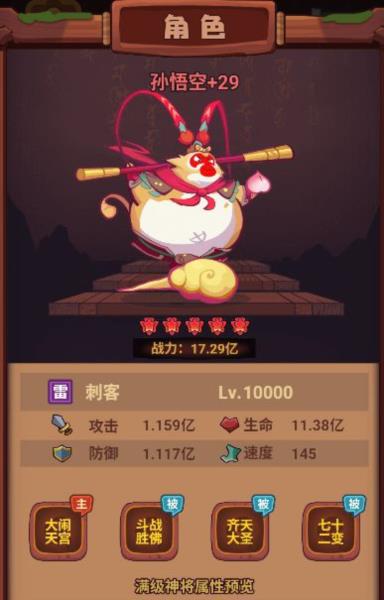西游除妖主C神将选择心得一、最强群体攻击-孙悟空