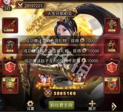 3、活动奖励:游戏中会不定期推出各种活动,如登录送礼、充值返利等,玩家可以通过活动获得君主。