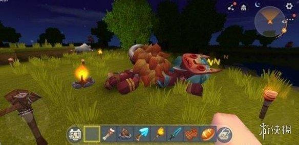 2、接下来,当篝火已经完全燃烧起来时,便可将准备好的生肉置于火焰之上开始烧烤。