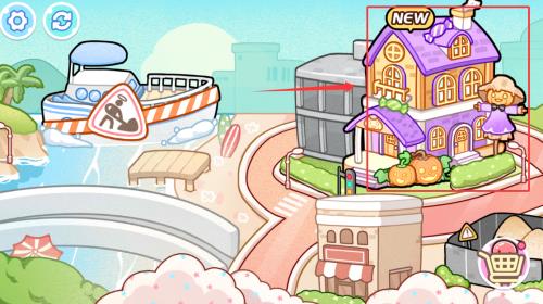 2、根据红框箭头提示,点击紫色房屋进入场景。