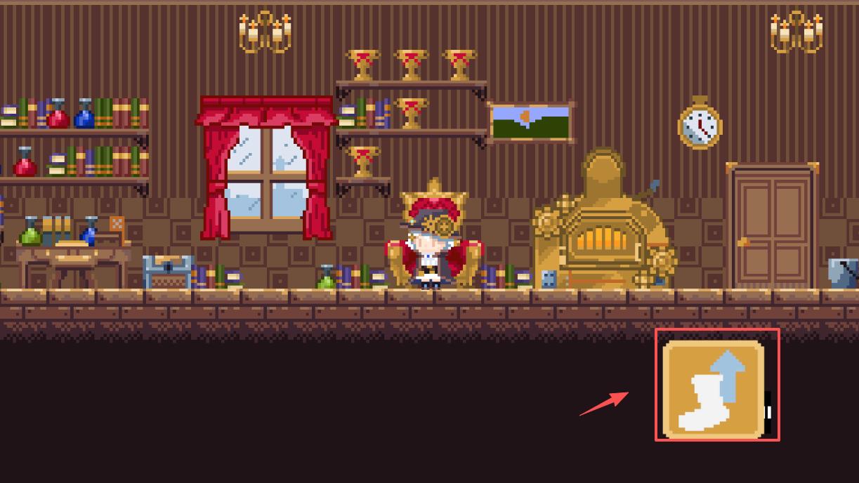 3、在探索场景时,注意画面中的物品,比如书架、装置和门。右下角的靴子箭头图标是重要提示,通常代表移动或交互,记得点击看看。