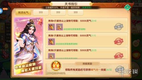2、天书指引,跟着收集极品仙宠,奖励一个野怪经验加30%的技能,是挂机神技。