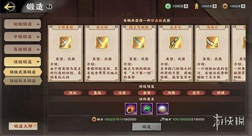 4. 在工坊里,玩家可以通过锻造大师获得红色极品武器和防具。