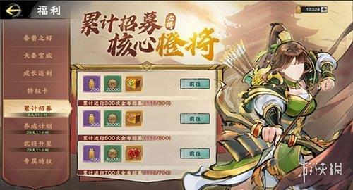以秦汉历史为核心,玩家可选择不同阵营,收集嬴政、刘邦等海量历史名将。武将拥有专属技能与属性,通过七日自选、招募等方式获取,可自由养成升级,组建专属阵容。