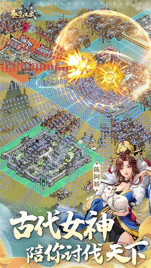 卡通渲染风格告别传统SLG的厚重感,人物建模精致,场景特效唯美,既符合年轻玩家的审美,又精准还原秦汉建筑与服饰特色,视觉体验与历史氛围双重在线。