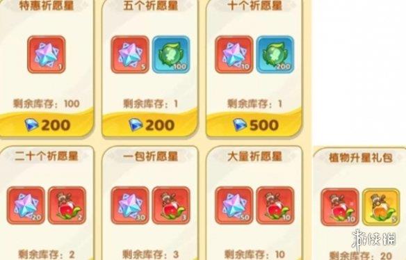 可以通过钻石礼包购买,例如200钻石可以购买5个特惠祈愿星和植物精华。
