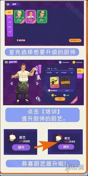 2、在厨师列表中挑选需要提升等级的厨师对象。