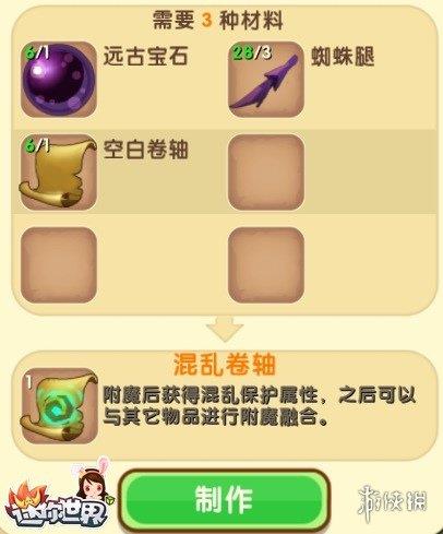 制作方法:将上述材料放入工具箱内合成出混乱卷轴。