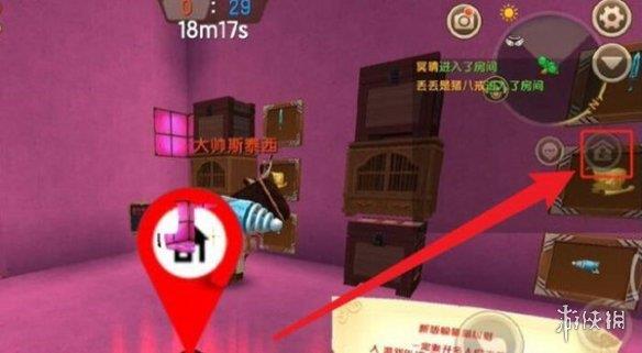 3、加入房间后,请注意,默认状态下房间内的语音功能并未启用,需要您手动开启,这时,找到并点击屏幕上的小地图图标旁边的房间信息标识按钮。
