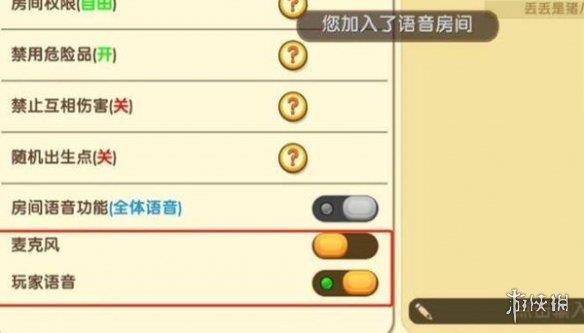 6、当您找到房间语音功能时,只需将其打开,屏幕上就会显示出麦克风和玩家语音权限控制的开关。