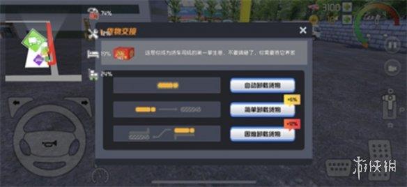 2、到达目的地后,系统将提供三种卸货方式:自动卸货(全辅助)、简易卸货(半手动)和挑战卸货(全手动)。
