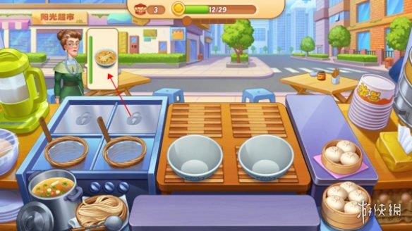 3、留意火候情况,待食材制作完毕后,点击将食材捞出,接着再点击食品,便可提供给有需求的顾客。