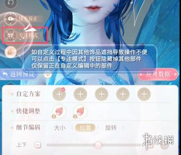 8、自定义过程中因其他饰品遮挡导致操作不便,可以点击【专注模式】按钮隐藏掉其他部件仅保留正在自定义编辑中的部件。