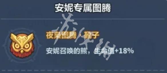 2、将安妮当做副C或辅助进行培养时,更偏向装备【续航类】的图腾,其中最推荐[夜枭]图腾,不仅能大幅提高召唤熊生命值,而且该图腾是普通图腾,获取难度较低。