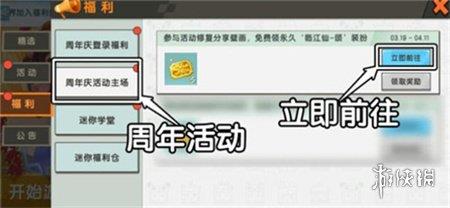 1、首先,点击福利按钮,找到周年庆活动主场,点击前往按钮进入活动页面。