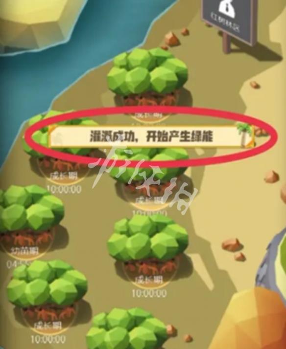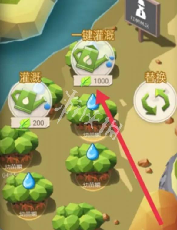 1、玩家需要先找到需要灌溉的树木区域,比如红树林区域。每棵需要浇水的树木上方都会显示一个水滴形状的图标,这个就是浇水的提示标志。点击水滴图标后,会弹出包含多个选项的操作菜单。