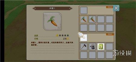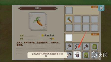 这里有个细节,玩家第一天可以不开垦农田,等第二天卖掉胡萝卜的钱刚好可以升级工具,将洒水壶升级一次后,就可以一次浇三块田,十分惬意。