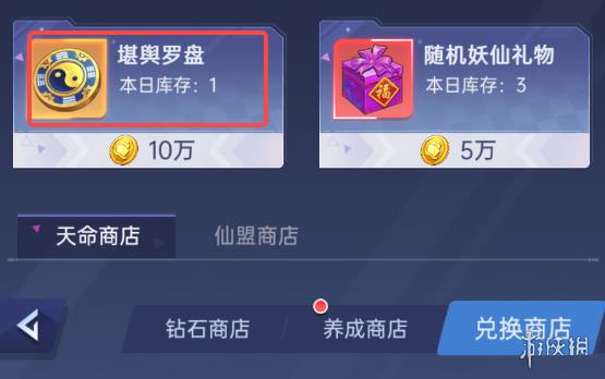 2、天命商店,使用10W天命积分来兑换1个堪舆罗盘,每日只能兑换一次。