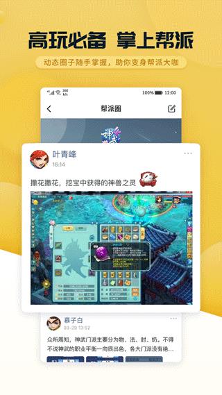 完美移植游戏内帮派玩法,随手掌握帮派情况。如果你是一帮之主、帮派高层、活跃份子,它将成为你的移动帮派,从此告别不在电脑旁的尴尬!