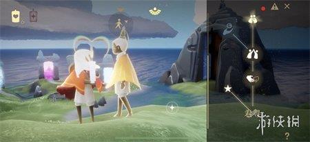 点燃石像上的火苗后,它就会教我们一个新的互动姿势,另外,找到黄色人影并与它们互动,收集光之翼,我们的飞行技能就能得到升级——斗篷背后的星星数量就代表我们的飞行级别。