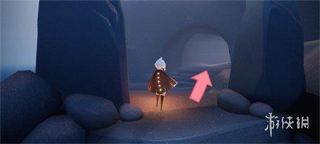 2、进入晨岛地图后,继续前行,可看到门后右侧有一个山洞楼梯,进入该山洞。