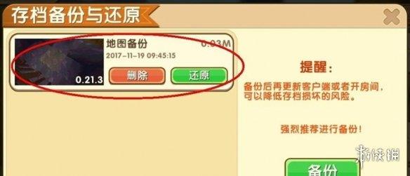4、打开存档备份与还原界面,看到地图备份,里面的删除和还原,点击备份就行了,如果地图遭破坏,可以点击还原选项,就可以还原了。