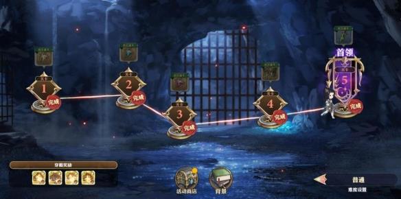 通关背景难度之后可以选择普通难度,此时可以使用自己的队伍反复挑战刷取活动代币,可以用于交换大量的抽卡和养成资源。