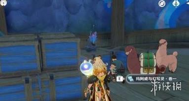 3、卷三:传送到纳塔流泉之众上方的传送锚点,沿路往小地图西南边走,在第二个岔路口右转,左侧路边的木箱子上拾取。